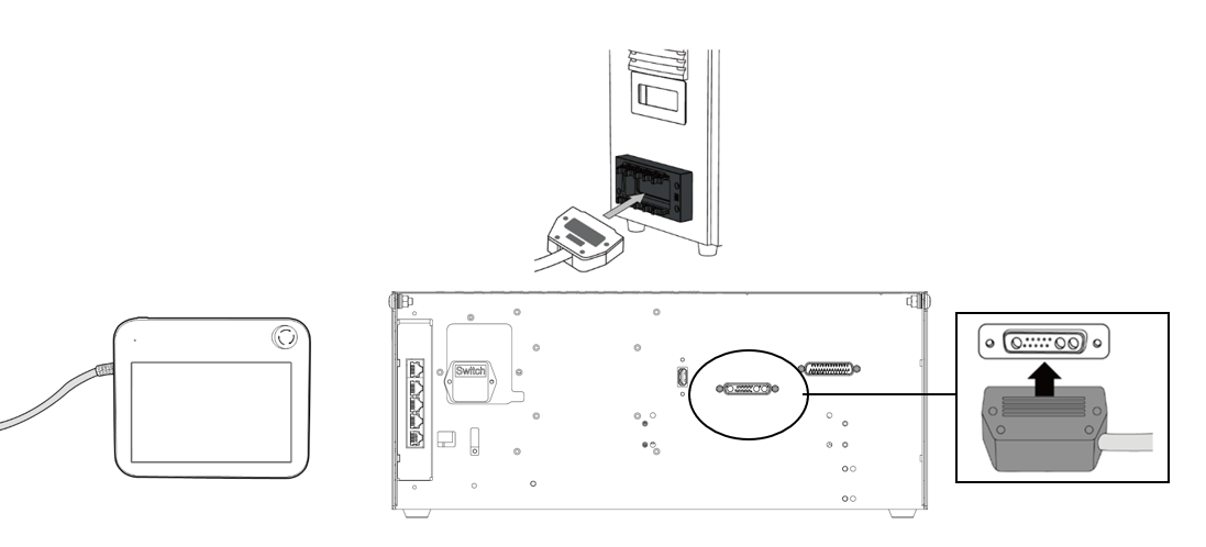 • Připojte druhý konec připojovacího kabelu manipulátoru k odpovídajícímu připojení řídicí jednotky, dokud nezapadne, a ujistěte se, že je kabel pevně zapojen.