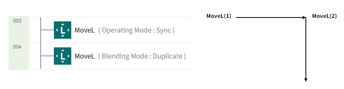 Async spustí další příkaz současně, když začne příkaz pohybu. Používá se k plynulému připojení různých pohybů a používá se také při současném zapnutí/vypnutí výstupu signálu při zahájení pohybu.