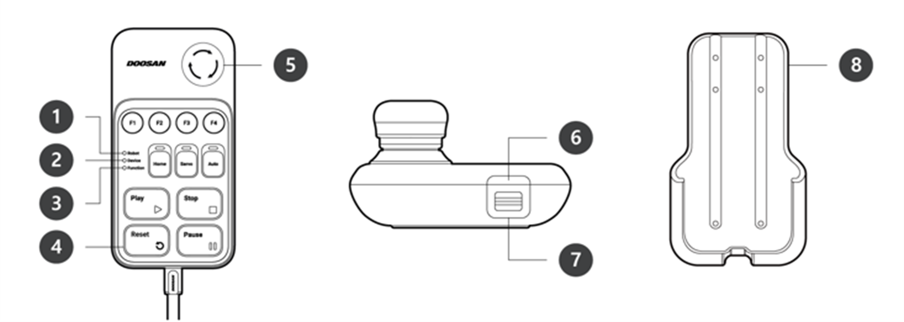 - Pokud potřebujete během práce chránit a držet učící ovladač, můžete ho používat bezpečněji a snadněji s měkkým krytem dodávaným společností Doosan Robotics.
