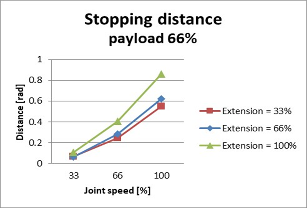 Zastavovací vzdálenost a zastavovací čas kloubu 2 (rameno)