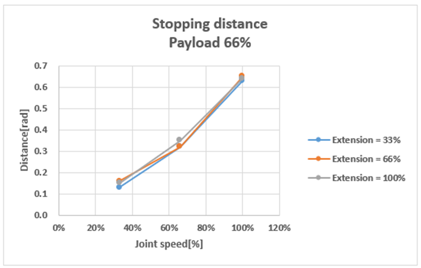 Zastavovací vzdálenost a zastavovací čas kloubu 2 (rameno)