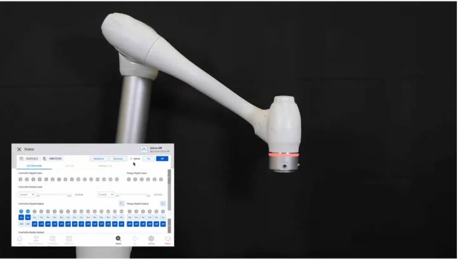 Diese beiden Wiederherstellungsmodi werden verwendet, um den Roboter im Status „Servo aus“ in die Sicherheitszone zu bringen, wenn der Notstopp aktiviert ist oder der Roboter aufgrund einer Kollision usw. nicht ordnungsgemäß funktioniert. Stellen Sie Servo aus ein, um den Sicherheitswiederherstellungs- oder kraftlosen Bewegungsmodus zu aktivieren. Weitere Informationen finden Sie unter Sicherheitswiederherstellungsmodus und Backdrive-Modus (Freifahren).