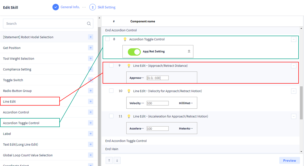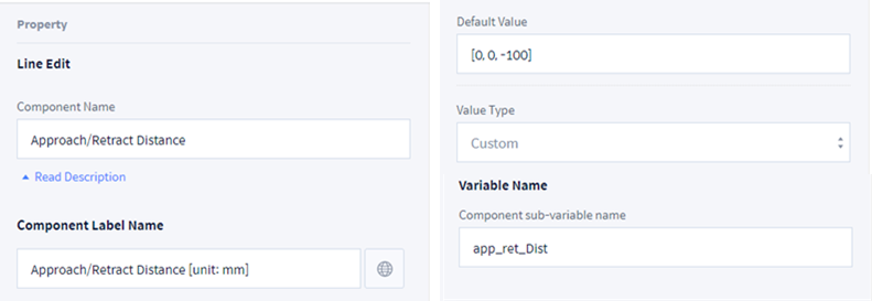 - Component Label Name: Approach/Retract Distance [unit: mm]