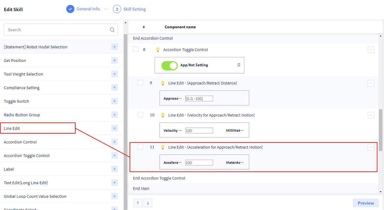 - Component Label Name: Acceleration for Approach/Retract Pose