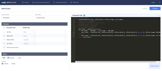 Currently, App Builder limits the maximum capacity of Code Editor to 65,000 bytes for comfortable loading and execution. For a successful build, the capacity of each code using Code Editor, such as a function, must be written separately so that it does not exceed 65,000 bytes.
