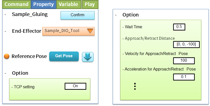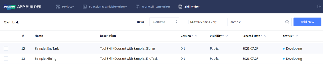 Doosan Robotics provides a Sample for this exercise on the App Builder website. You can easily create WCI and Skill for single-acting tool by copying the following Sample.