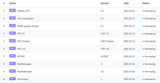This is the first entry screen after logging into AppBuilder. It describes the screen to check the existing WCI(Workcell Item) and skill list in development by the user, and the date of creation, version, etc.