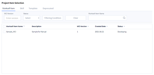 Workcell Item | It outputs the list of Workcell Items created by the user in Workcell Item Writer. |