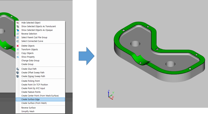 The user can optionally select the surface edge. If the user selects no edge, then a path following whole surface edge is created. If the user selects edges, then a path following the selected edge is created.