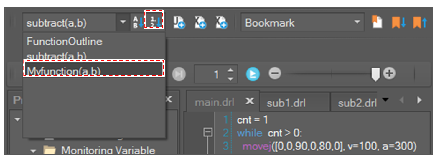 To sort the Function Outline list in order of line numbers, click the Sort Function List By Line No