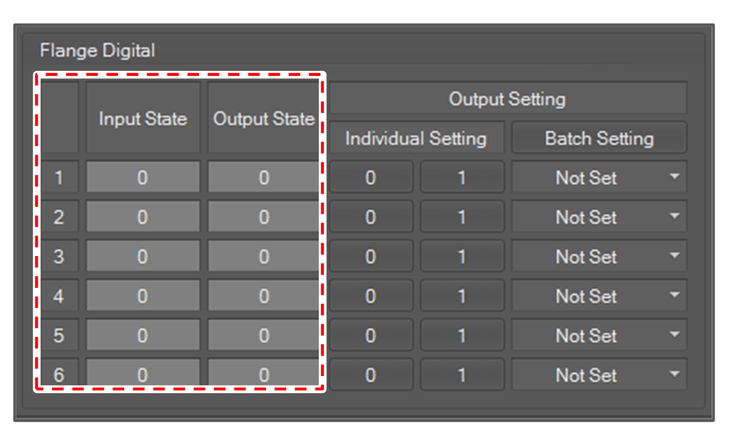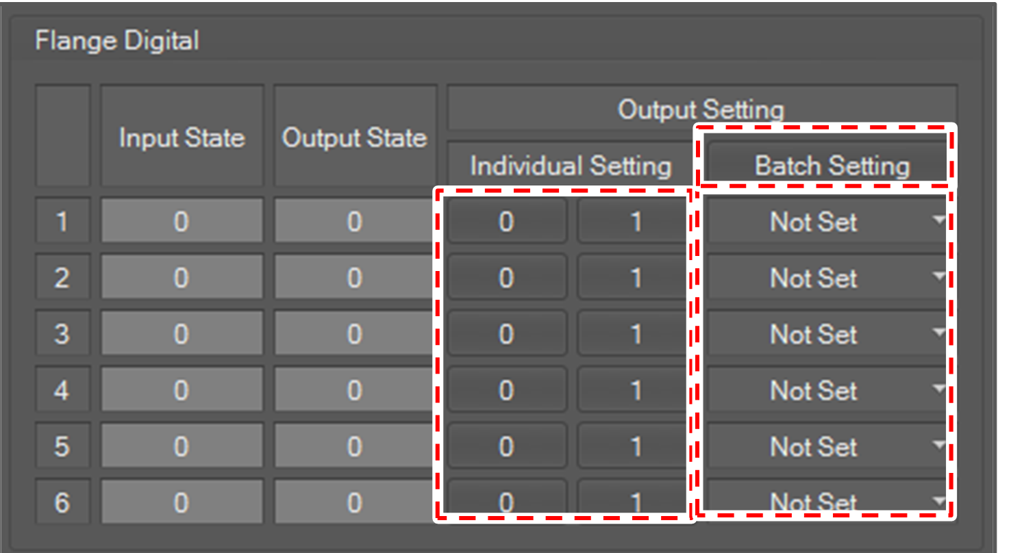To set all outputs at once, select value for the flange digital and click the Batch Setting button.
