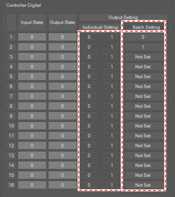 To set output, click the 0 or 1 button for each channel in Individual Setting.