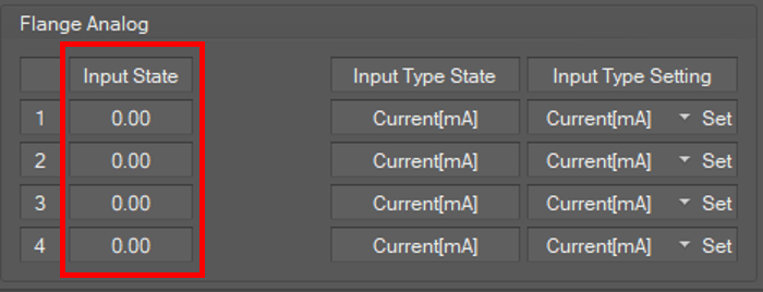 The Analog IO state of the controller is displayed in the Input State/Output State field