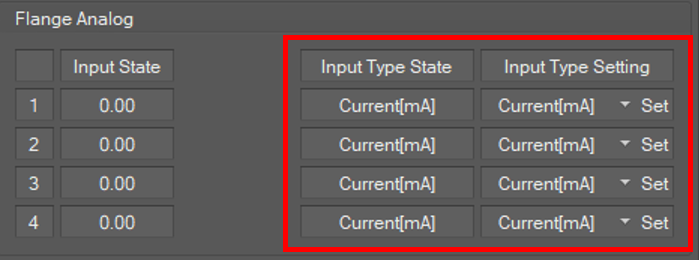 To set the value type, select the type and click the Set button for the input/output type that you want to set in Input/Output Type Setting.