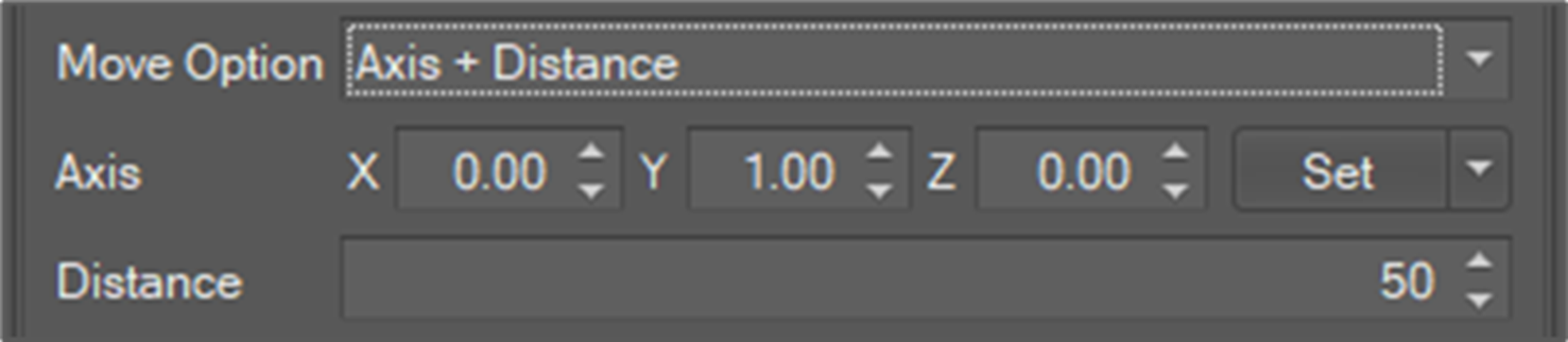 - Axis + Distance: The function moves the selected objects by the distance along the axis.
