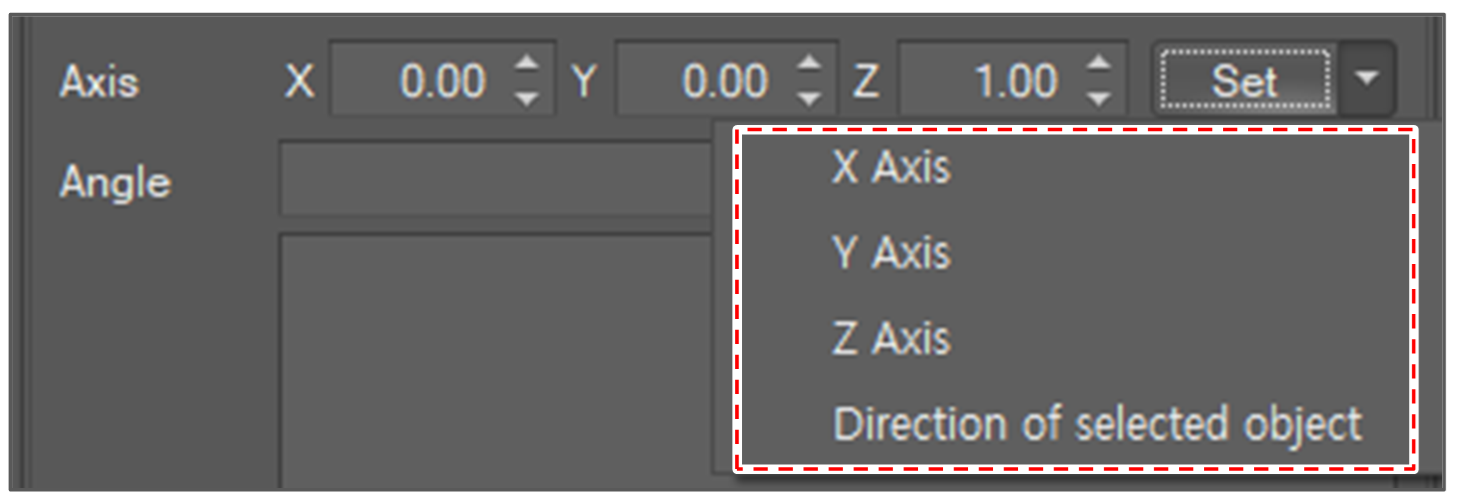 The mirror axis setting options are as follows.Provides normal direction lookup function. The options for selecting objects for lookup are:- If two points selected, the direction from starting point to the end point is set.