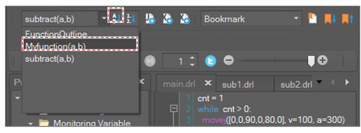 To sort the Function Outline list in alphabetical order, click the Sort Function List By Name
