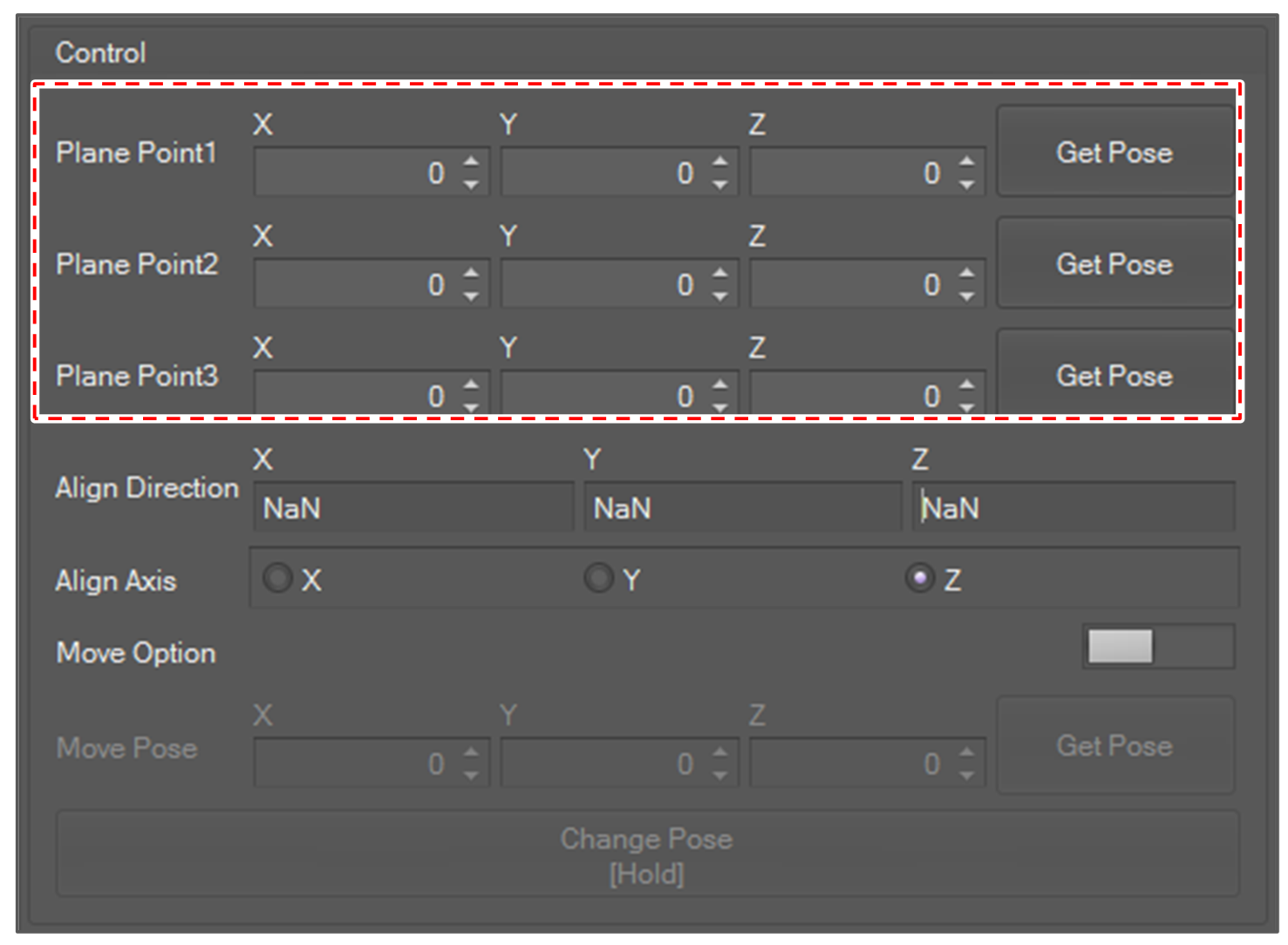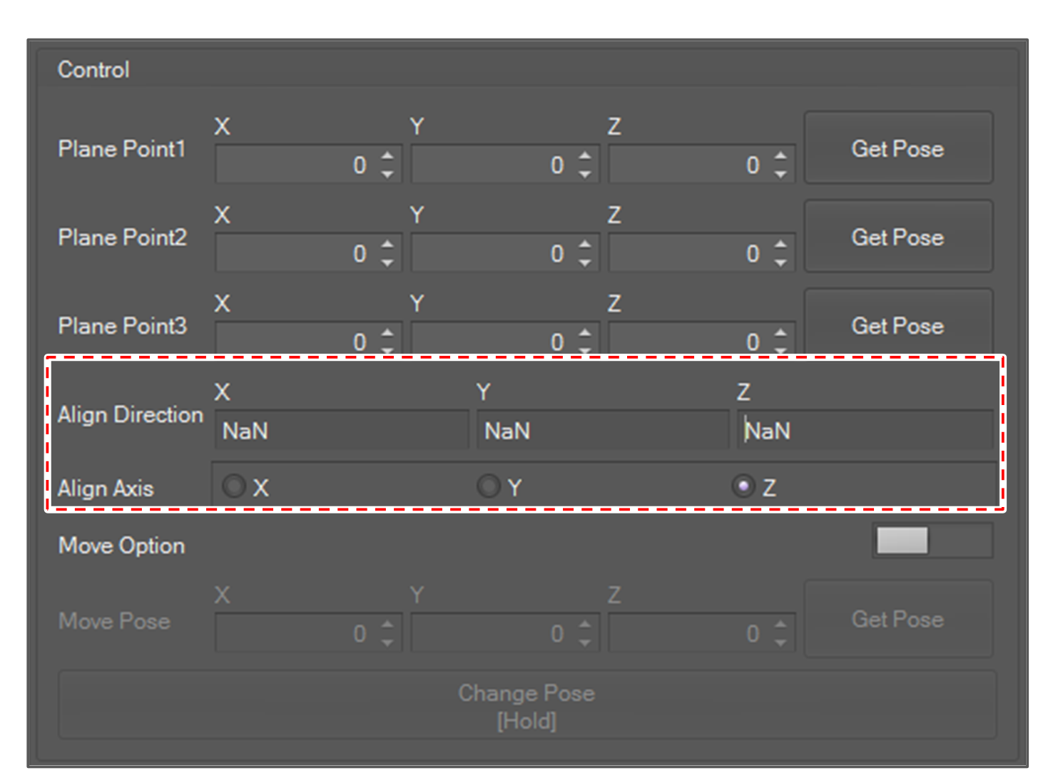 Set three plane points to decide the alignment direction. The alignment direction is the normal vector of the plane that the three plane points define.