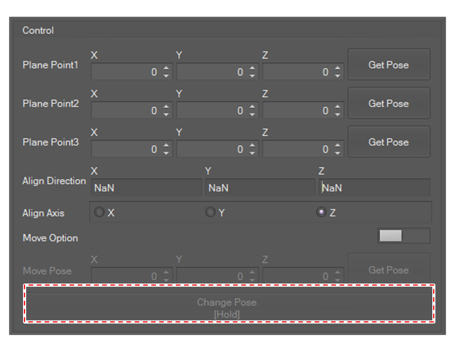 If you click and hold the Move To Align button, the robot will change its tool direction until you release the button.