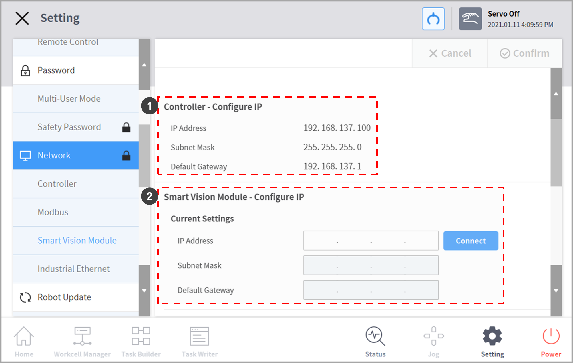 2 | Smarst Vision Module – Configure IP | Enter and connect the IP address of the camera.