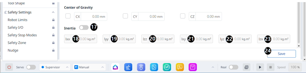 - It is recommended to add tool weight as Workcell Items for each tool with a workpiece. If the workpiece weight is too heavy, the robot may recognize the weight of the workpiece as external force. It is because the robot determines this external force as a collision and stops.