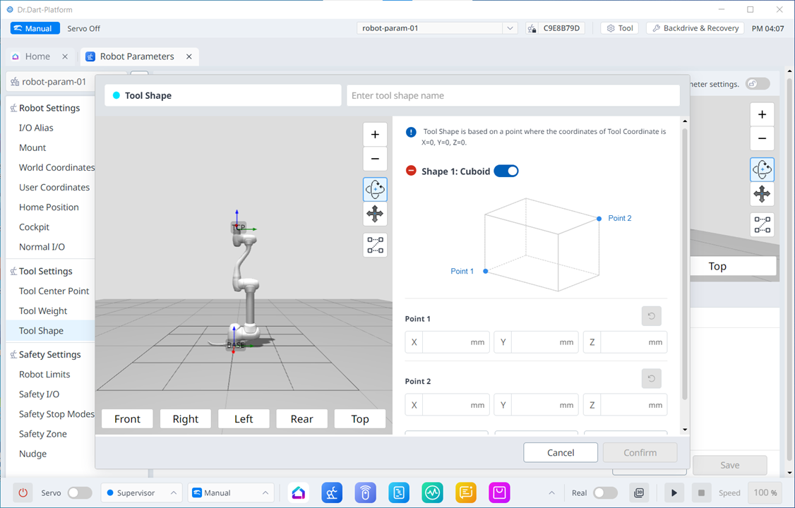 - Take caution as the zone the robot can maneuver will decrease if the tool shape is set too large.