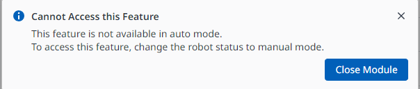 If you receive the following warning message, change the status of the robot to Manual mode.