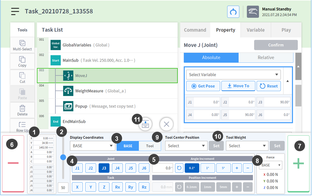 8 | Force Monitoring | Displays the occurring external force based on the selected coordinate system. |