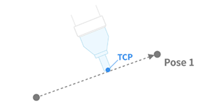 L in MoveL refers to linear. In this motion, the TCP on the robot end moves to the target pose (position and angle) with linear motion.