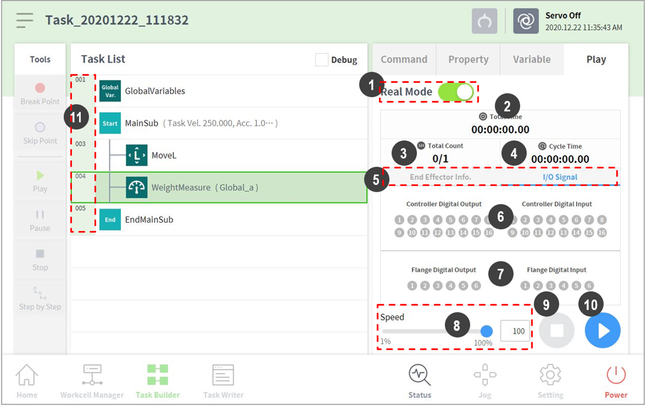 1 | Real mode ( | Sets the robot test play mode.