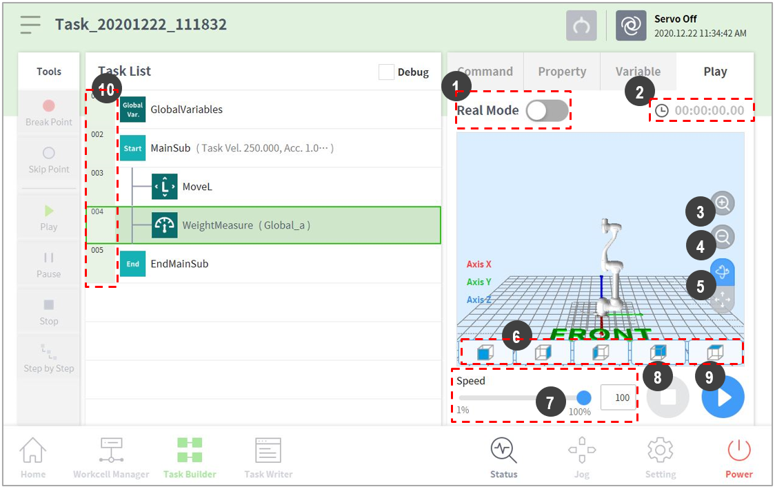 1 | Real mode ( | Sets the robot test play mode.