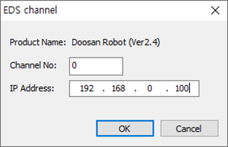 ※ Doosan robot is registered in Channel 0 as default in the gateway project.The </ If no Doosan robot is present, it is possible to register a Doosan robot with 4) below.