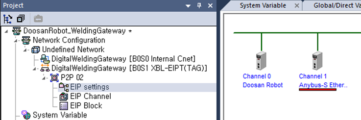 (Project Tree) Network Configuration → Undefined Network → XBL-EIPT(TAG) →P2P 02 → Select EIP Settings