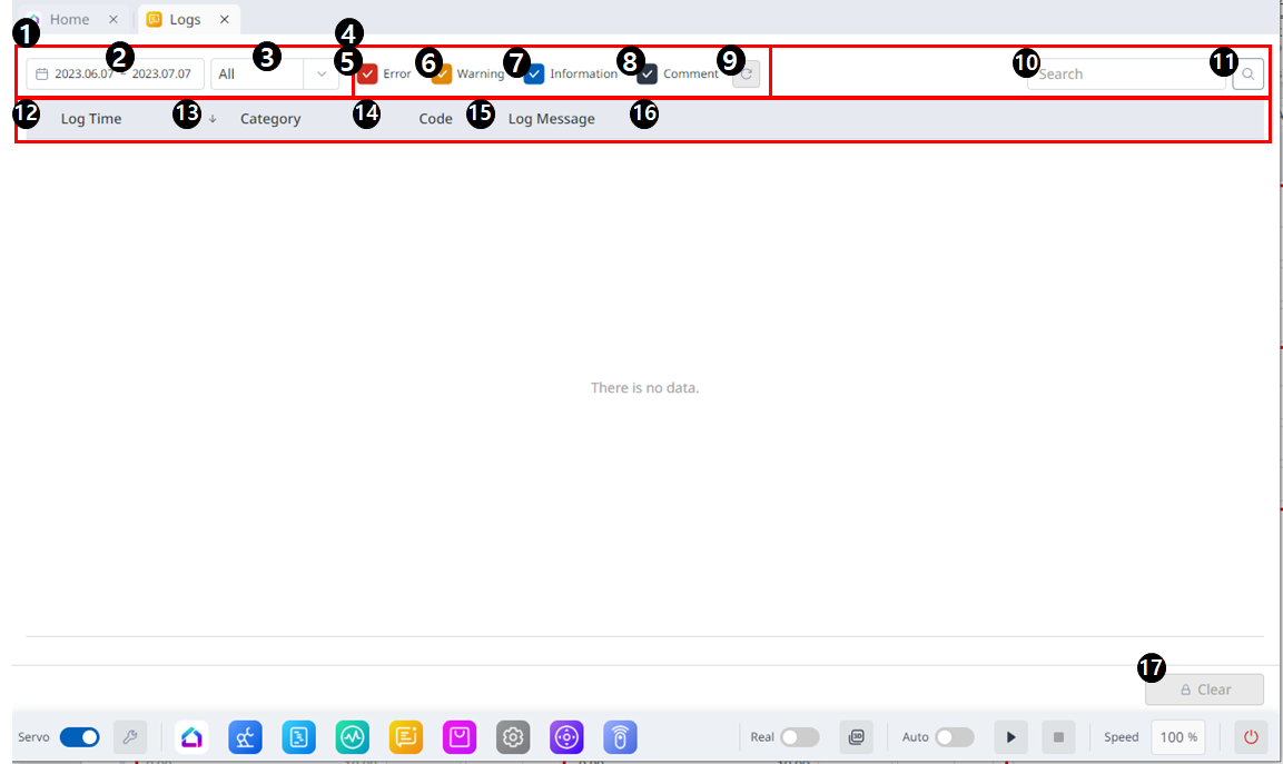 | 9 | Restablecer filtro | Este botón permite inicializar el tipo de log seleccionado. |