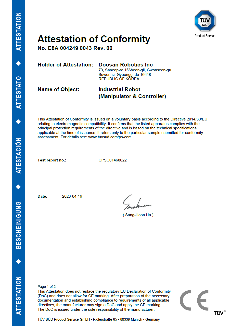 Certificación de conformidad de la directiva europea de compatibilidad electromagnética (EMC)