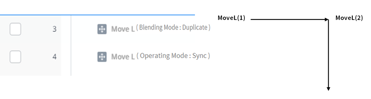 Los comandos de movimiento que no pueden aplicar la mezcla entre movimientos son los siguientes: Blending ya se aplica en estos comandos, por lo que aplicar radius a estos comandos y ejecutarlos provoca errores. El uso de comandos, como WaitMotion y stopmotion, puede ayudar a evitar errores.