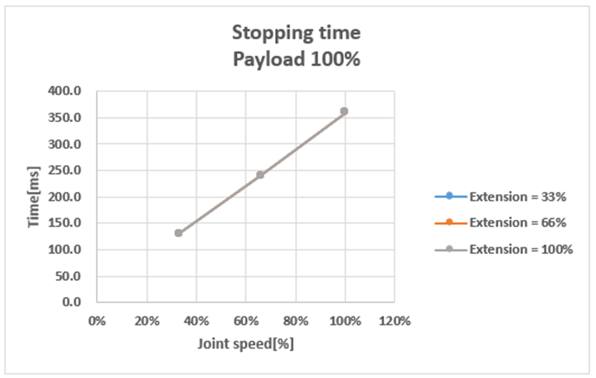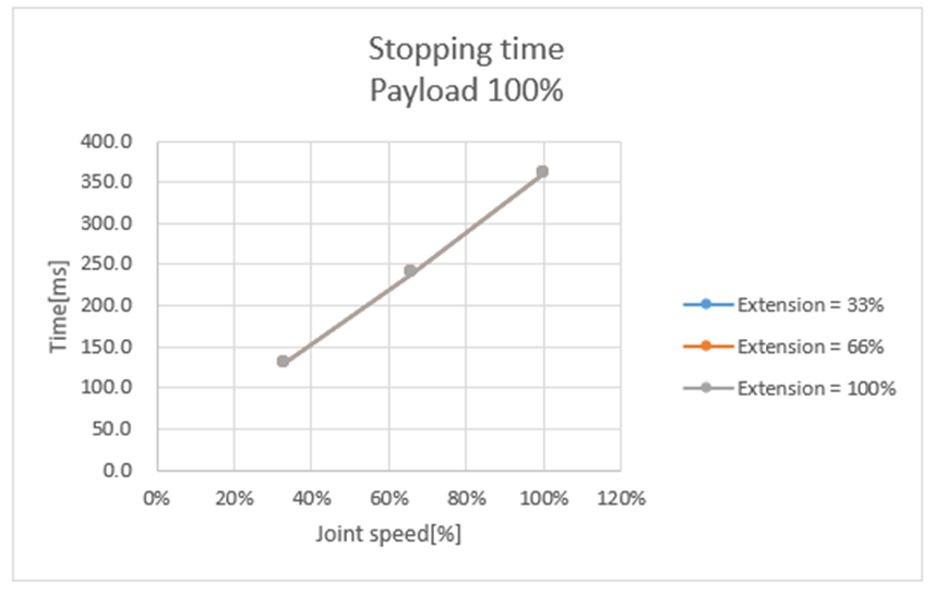 Distancia de parada y tiempo de parada de la articulación 2 (Hombro)