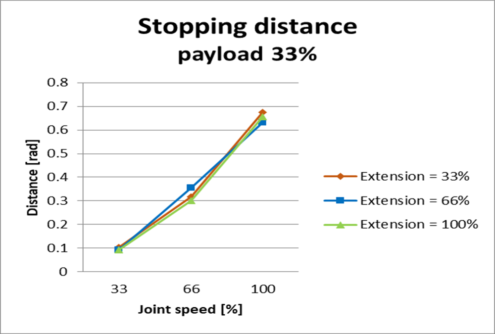 Distancia de parada a 33% de la carga máx. (rad) | Distancia de parada a 66% de la carga máx. (rad) |