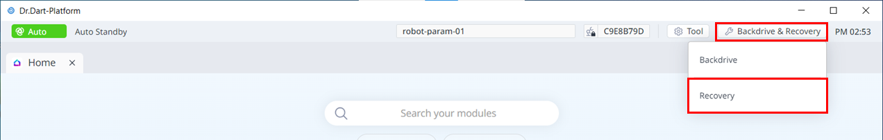 - Appuyez sur le menu récupération dans le volet d'en-tête.