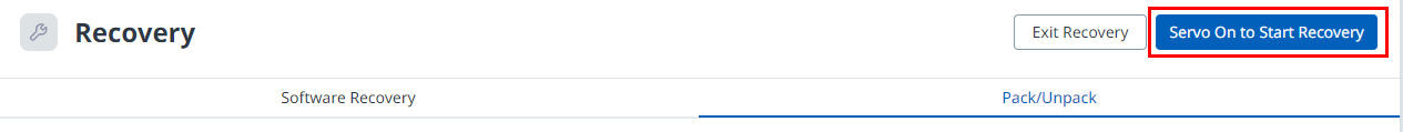 - Pour activer le mode emballage, appuyez sur le bouton Servo On pour démarrer la récupération.
