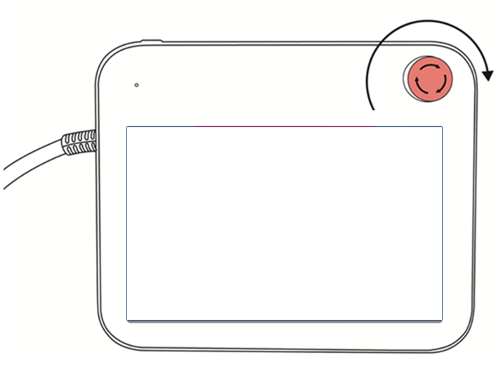 Tournez le bouton d'arrêt d'urgence dans le sens des aiguilles d'une montre pour désactiver l'état d'arrêt d'urgence.