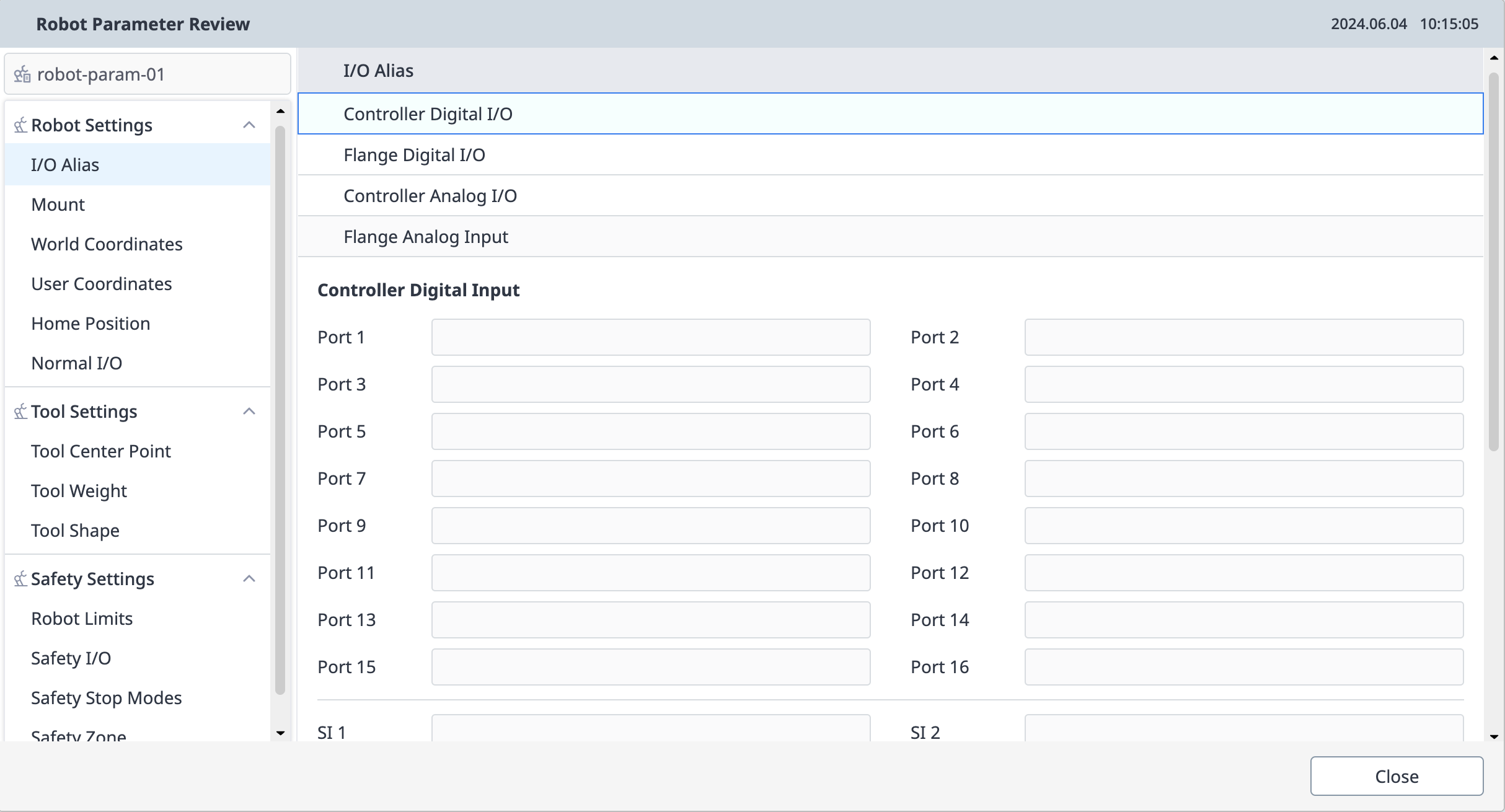 Si la valeur de réglage des données du robot a changé sur le module Paramètres du robot, les valeurs de réglage modifiées peuvent être stockées via la fenêtre contextuelle Examen des paramètres de sécurité.