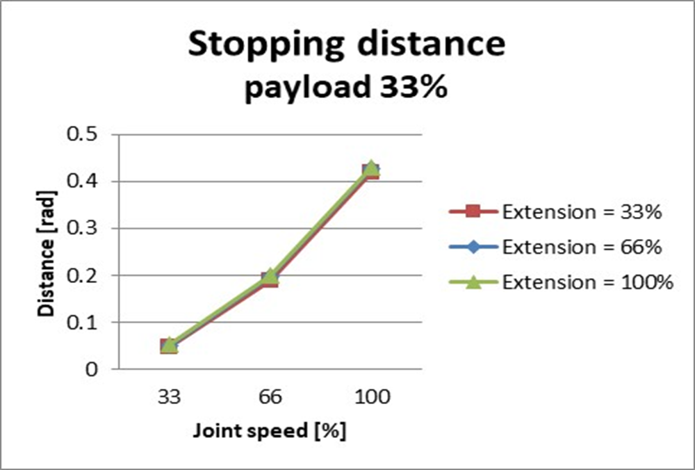 Distance d'arrêt à 33% de la charge max. (rad) | Distance d'arrêt à 66% de la charge max. (rad) |