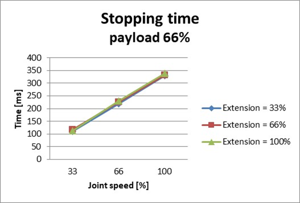 Distance d'arrêt et temps d'arrêt de l'articulation 3 (coude)