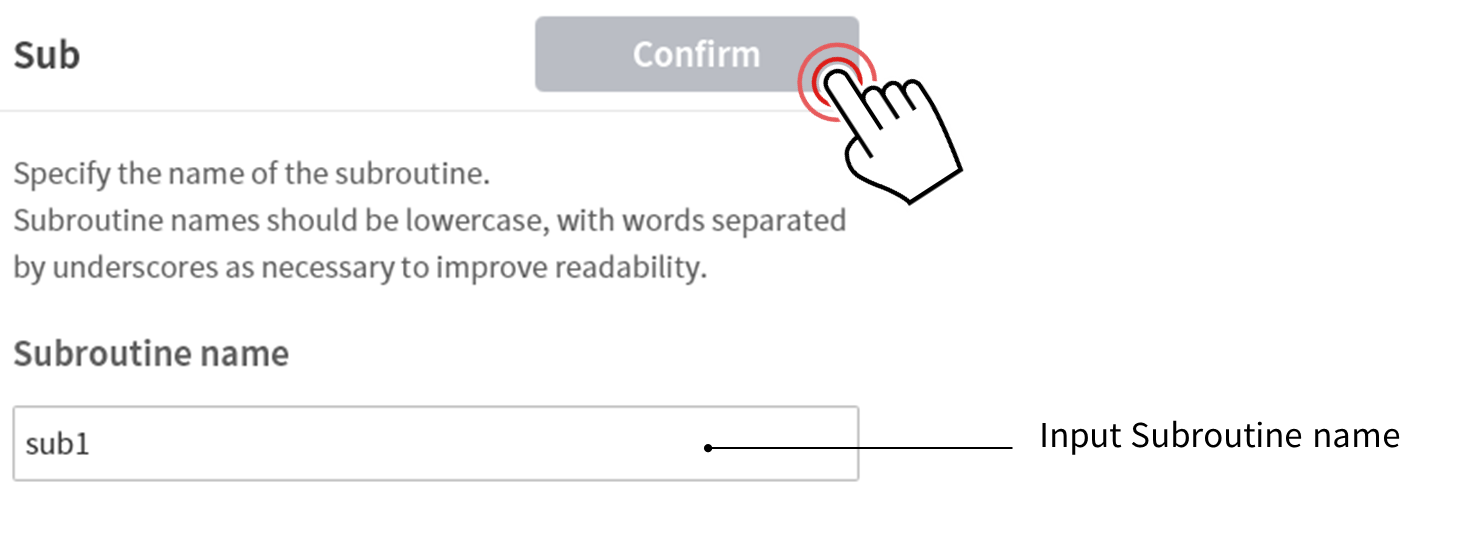 - Sélectionnez le nom du sous-programme enregistré avec la sous-commande.