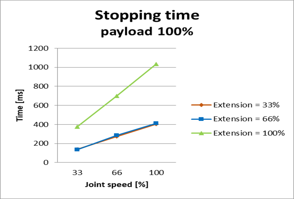 Distance d'arrêt et temps d'arrêt de l'articulation 3 (coude)