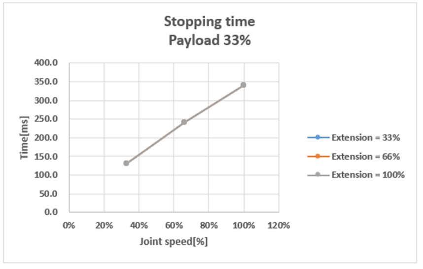 Distance d'arrêt et temps d'arrêt de l'articulation 1 (base)
