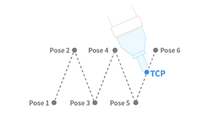 6 | MoveC | Le TCP du robot se déplace vers le point cible tout en maintenant un arc ![]() |