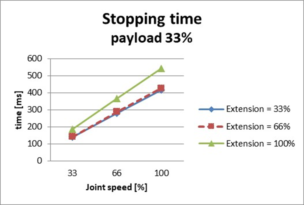 Distance d'arrêt et temps d'arrêt de l'articulation 3 (coude)