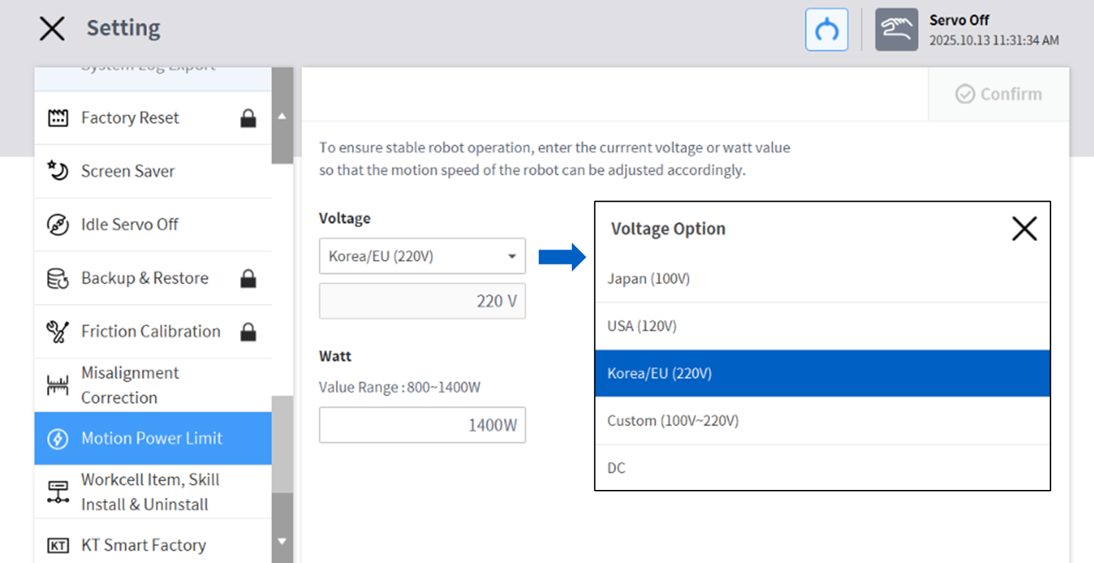 Si la puissance (W) saisie automatiquement diffère de votre environnement réel, vous pouvez l'ajuster manuellement dans la plage.